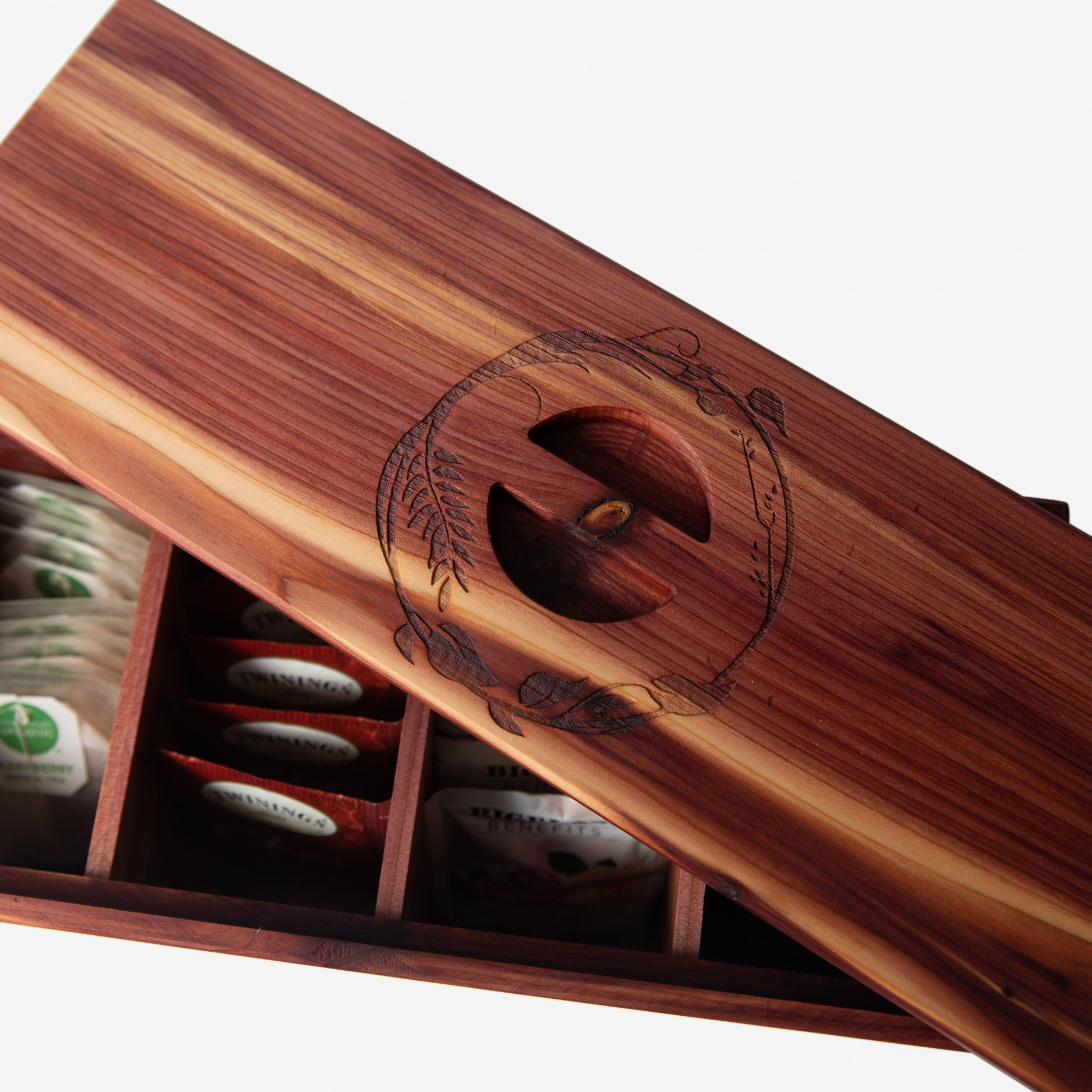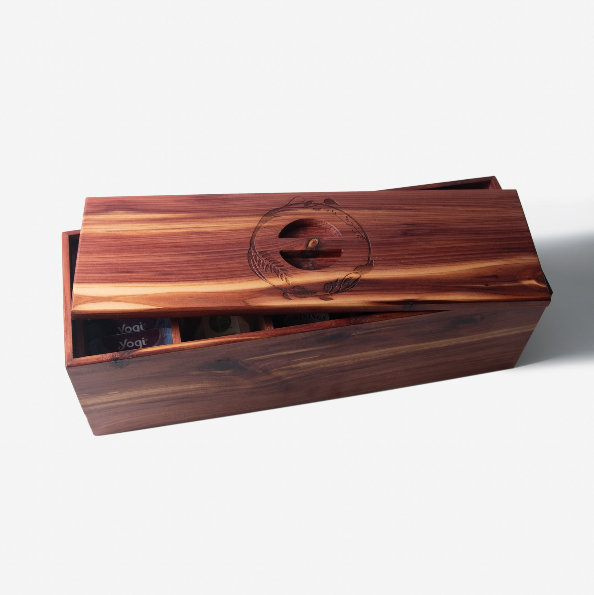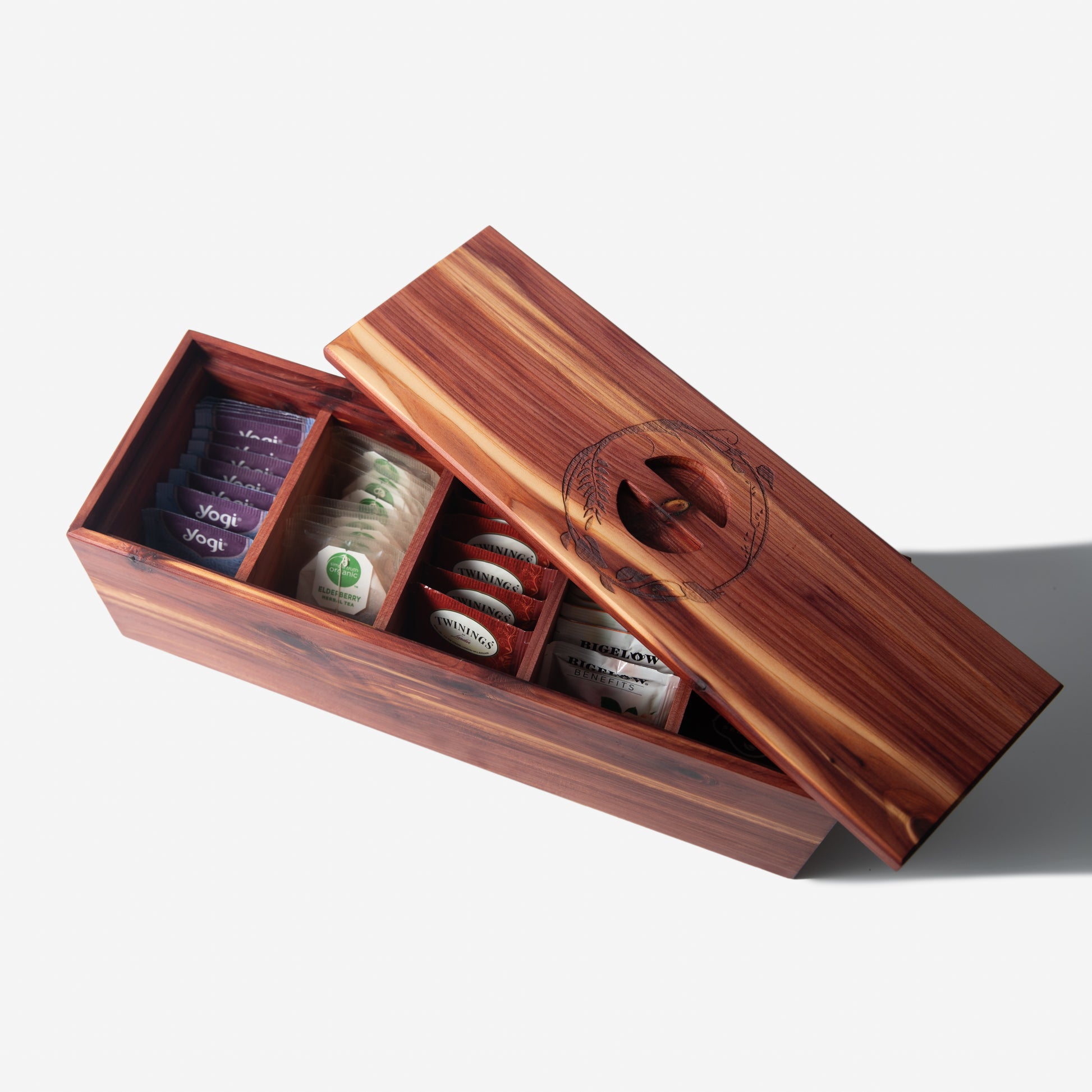 Hand-made Tea Box with 5 compartments for storing teabags made of aromatic red cedar